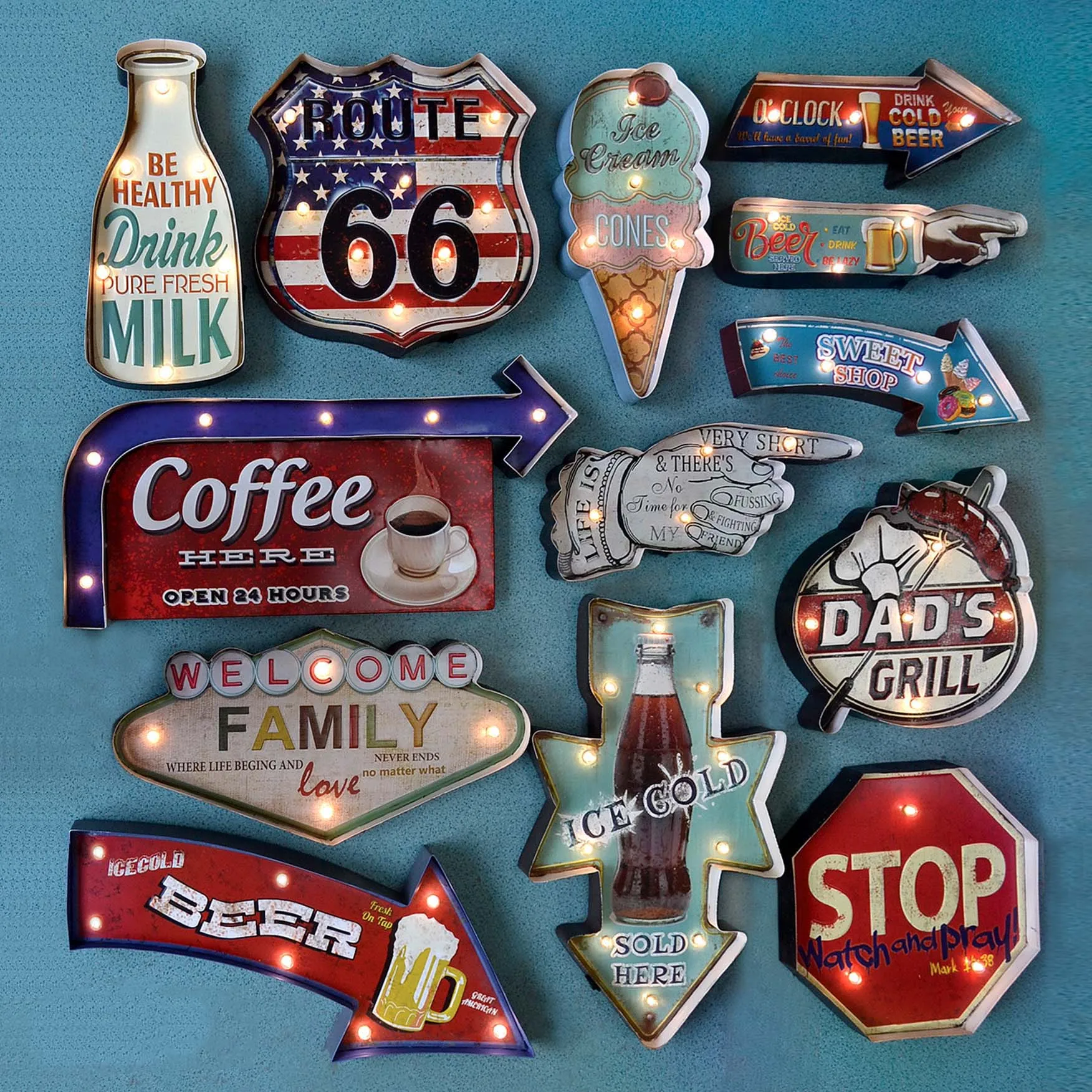 Loft Retro American Modern Led Light Creative Iron Wall Decorations Pendant Cafe Bar Decoration Caf