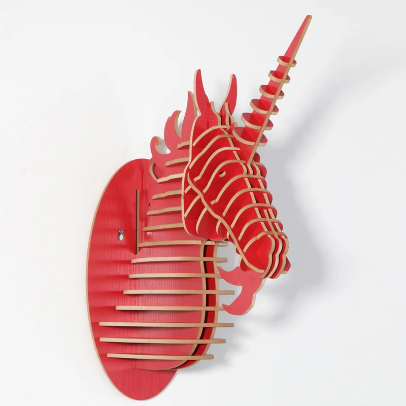 BEST QUALITY 1 set 9 Color 5mm MDF Wood Animals Head Creative Wooden Unicorn Wall Hanging Artwork For Art Home W