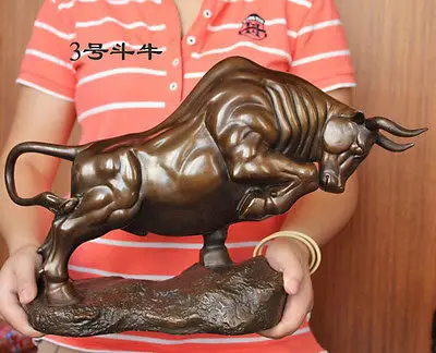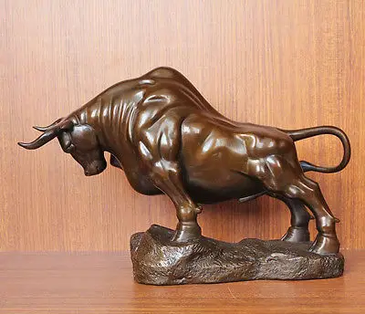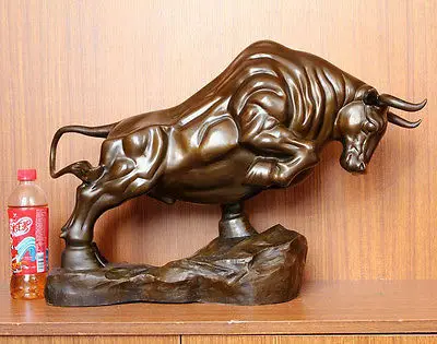 HIGH QUALITY Extra Large size Bronze coffee Wall Street Fierce Bull OX Figure Statue 16.5" Lribbon summer style