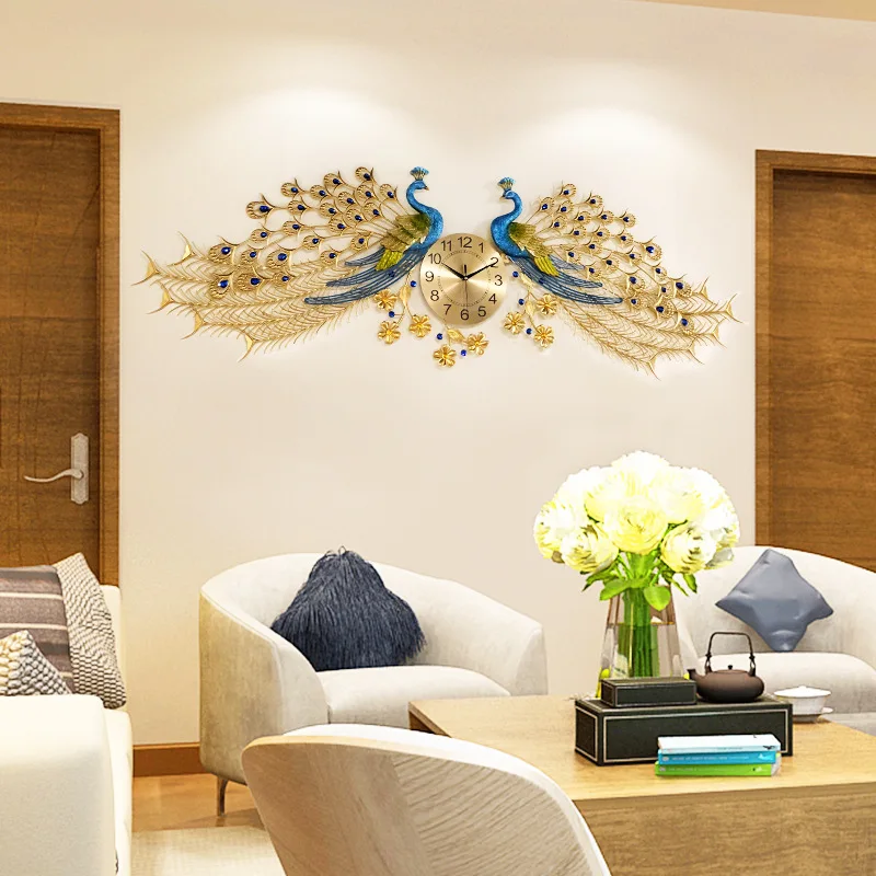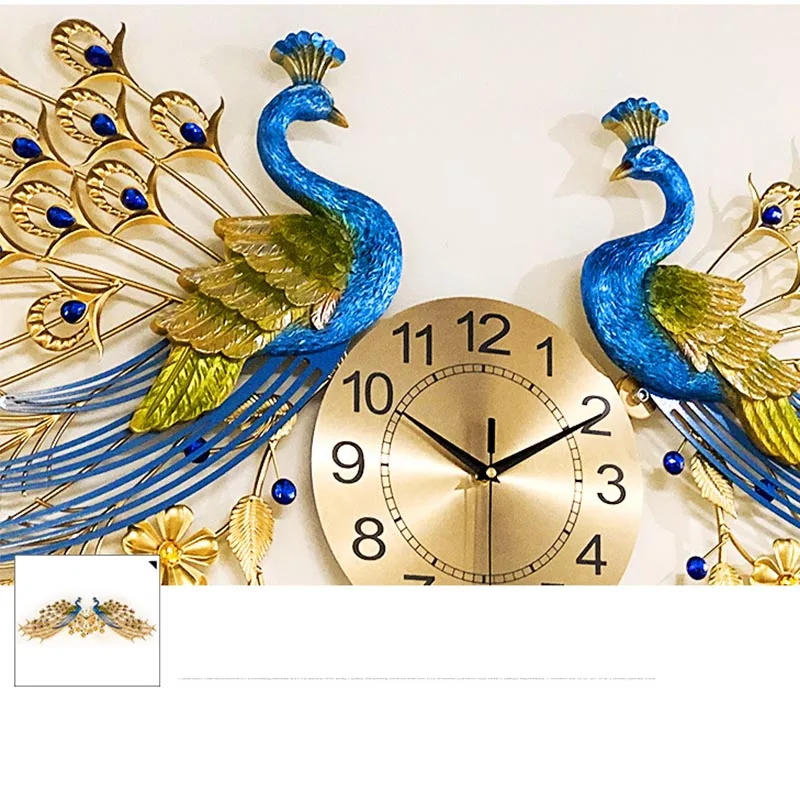 Large Golden Peacock Wall Clock Luxury Home Decor Silent Wall Clocks Living Room Bedroom Digital Mu