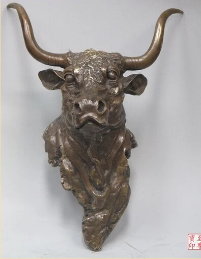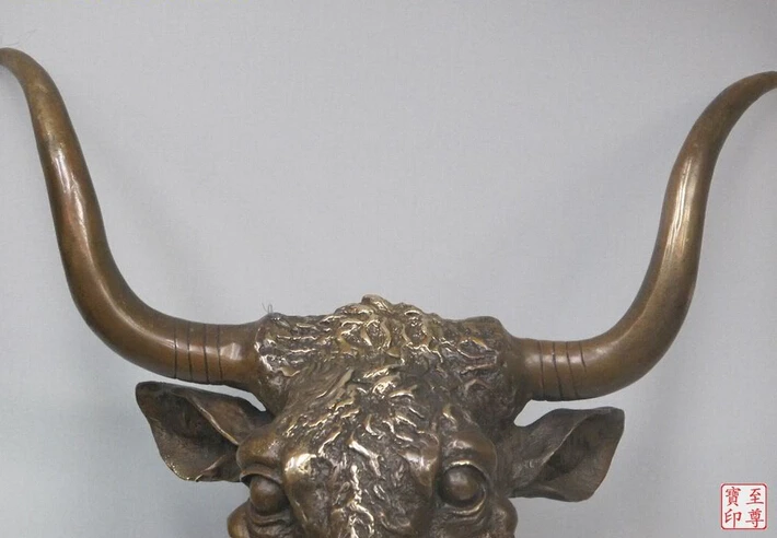 shitou 002301 20"Subtle Pure Bronze handwork ART sculpts OX bull head statue Wall Hanging discount