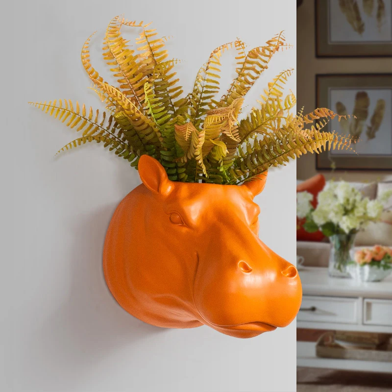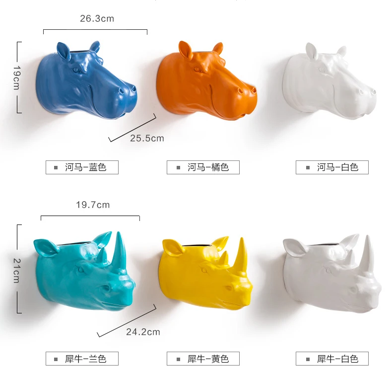 Simulation Animal Hippo Rhino Head Resin Statue Wall Ornament Wall Hanging Garden Creative Balcony