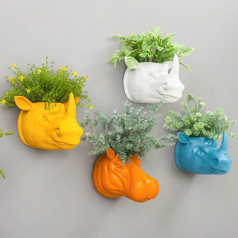 ORIGINAL Simulation Animal Hippo Rhino Head Resin Statue Wall Ornament Wall Hanging Garden Creative Balcony