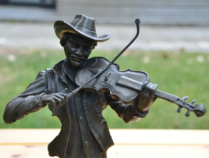 Review 2020 home LIVING ROOM wall TOP Decor ART--24CM TALL music Crazy violin bronze statue sculpture Deco