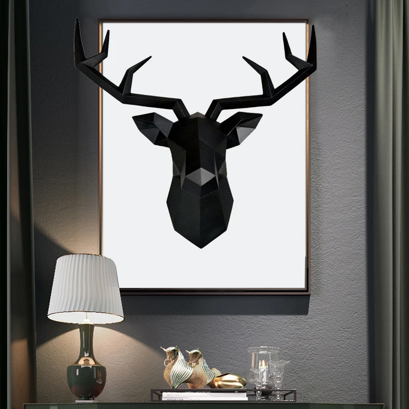 3D Deer Sculpture Home Decor 50x49x20cm Wall Hanging Statue Decoration Accessories Living Room Elk